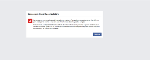 Posteriormente en tu perfil de Facebook aparecerá una imagen donde te indica que la computadora tiene un virus y debes seguir los pasos que se indican para eliminarlo.