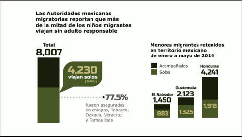 Las cifras que han recopilado las distintas insituciones que tratan con niños migrantes no concuerdan exactamente entre sí, pero todas señalan que el éxodo de niños es masivo. El Instituto Nacional de Migración de México dice que solo en lo que va de 2014 la cantidad de niños que intenta cruzar México para llegar a EE.UU. se ha incrementado en 129% . El Departamento de Seguridad Fronteriza de EE. UU., donde están colapsados los centros de detención de menores, reporta 160% de aumento de detenciones respecto al año anterior.