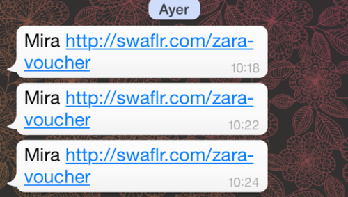 Recientemente sale a luz un nuevo engaño, donde un enlace ofrece descuentos en Zara, Starbucks y H&M, estos enlaces llegan a los usuarios por medio de mensajes.