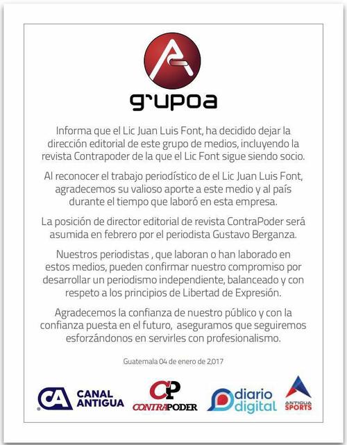 Ante esto Soy502 se comunicó con Rolando Archila, actual director de Grupo A, y él aclaró que nunca ha existido ningún tipo de censura hacia su personal "de hecho la publicación fue tal y como la hicieron los periodistas". Además, aseguró que el atraso en la impresión fue porque hubo un cambio en la gerencia de circulación "solo es de que tengan paciencia porque ya les llegará en las próximas horas", puntualizó.