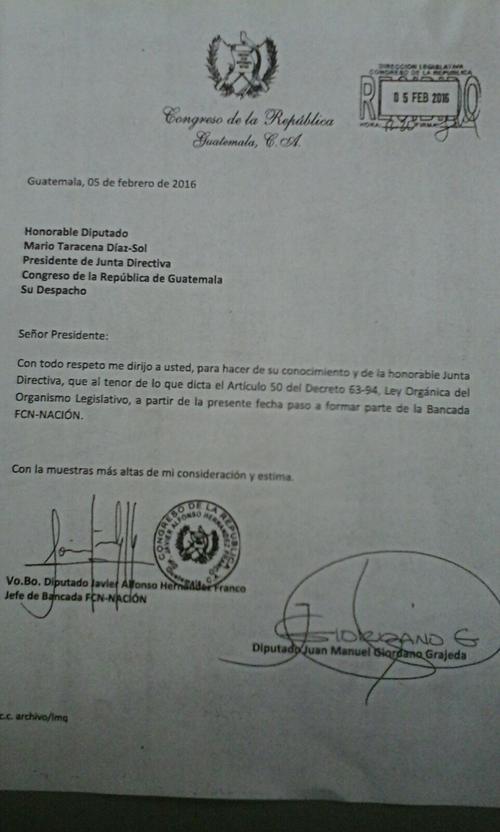 Giordano sigue en el Congreso por un golpe de suerte. Aunque no obtuvo los votos necesarios para ser reelecto, contó con la fortuna de que el Tribunal Supremo Electoral no le adjudicó la curul a Jaime Martínez Lohayza porque la CICIG y el Ministerio Público lo señalan de financiar sus actividades políticas con dinero del narcotráfico.