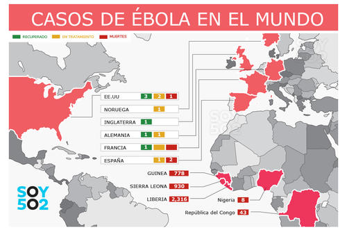 En otras partes del mundo, el ébola ha sido motivo de controles. En África, los decesos han superado la cifra de los 4 mil. Fuera de ese continente, se han conocido varios casos de infectados, de los cuales solo se han confirmado tres muertes: dos en España y una en Estados Unidos. En Europa se han registrado casos en Noruega, Inglaterra, Alemania y Francia, pero no fallecieron.