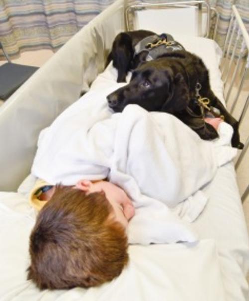 El amor y la conexión de este labrador y su dueño es tan fuerte que durante unas pruebas médicas para determinar la causa de algunos ataques que sufre James, fue permitido que Mahe estuviera con él en el hospital infantil de Wellington.
