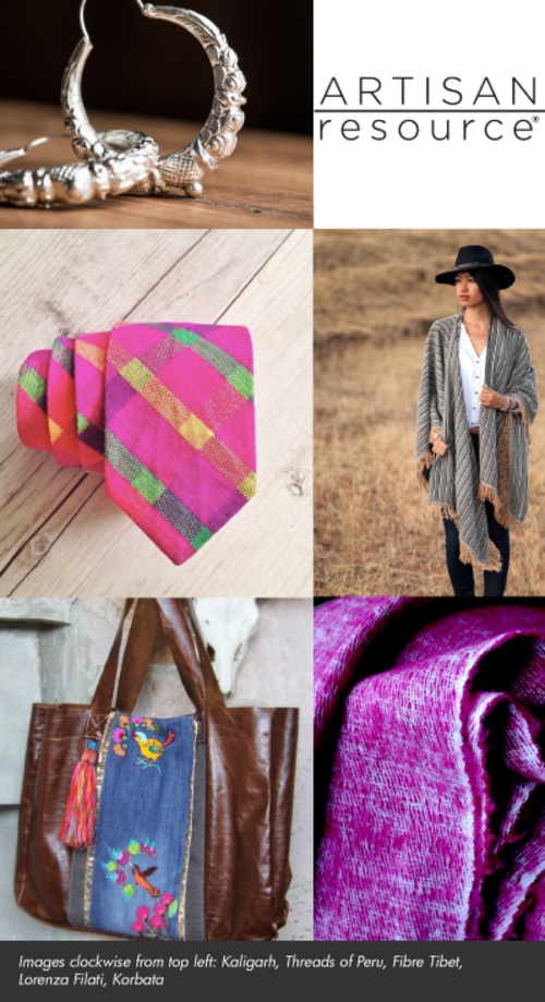 "Artisian Resource" incluye artículos de papelería, joyería, ropa y decoración para el hogar usando: textiles, cerámica, vidrio, metal, cuero, fibras naturales, papel y materiales reciclados.