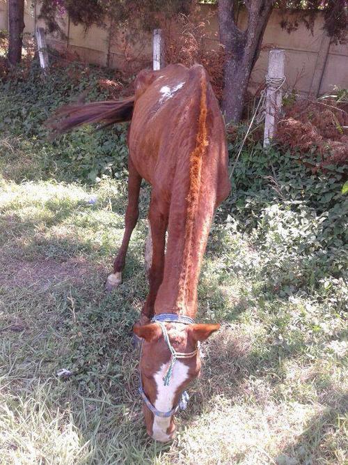 El grupo de rescate "Guate unida por los animales" recibió una denuncia la noche del sábado 12 de abril: un caballo tenía una cortada de machete en el lomo y estaba abandonado a las orillas de la carretera a Antigua Guatemala.