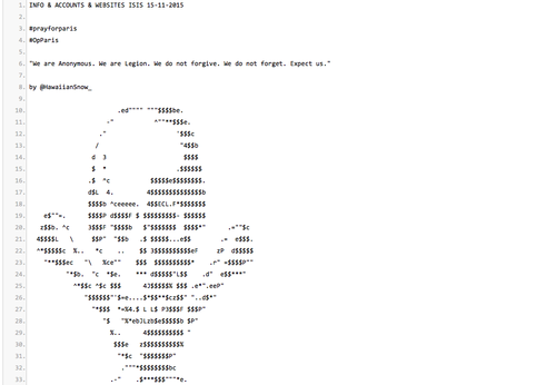 Los activistas publicaron un mensaje dirigido a los integrantes del ISIS: "Somos Anonymous. Somos legión. No perdonamos. No olvidamos. Espéranos". Anonymous también publicó una filtración de manuales del grupo terrorista de como proteger los dispositivos móviles y programas antivirus, además del borrado de datos personales, entre otras indicaciones.