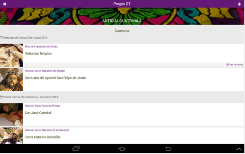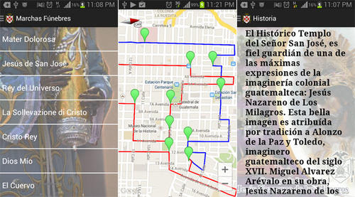 Esta aplicación ofrece un calendario de velaciones y procesiones de Cuaresma y Semana Santa en Antigua Guatemala y Ciudad Capital, así como los recorridos de procesiones en Antigua Guatemala.