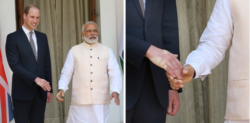 Con la visita de los duques de Cambridge, el príncipe Guillermo y su esposa Catalina, al primer ministro de India Narendra Modi, lo que más trascendió fue el saludo de manos entre ambos.