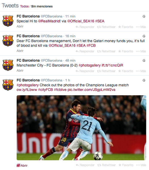 Mensajes como: "Apreciados dirigentes del Barça. No permitan que el dinero de Qatar los financie. Está manchado de sangre y de muerte", se pudieron leer en las cuentas oficiales del club en catalán e inglés.