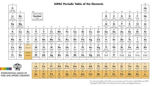 La Unión dio a conocer en su sitio web que los elementos serán conocidos de la siguiente manera: Nohonium (Nh o número 113), Moscovium (Mc o número 115), Tennessine (Ts o número 117) y Oganesson (Og o número 118).