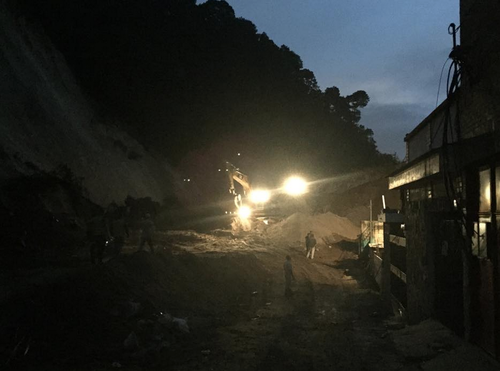 Los camiones que coordina el Ministerio de Comunicaciones han realizado 30 viajes en total, cada uno con cargado con 15 metros cúbicos de tierra para un total cercano a los 500 metros. Sin embargo, falta por extraer 17 mil 500 metros cúbicos. Pero eso, solo es uno de los 10 frentes en los que el área del derrumbe se ha dividido.