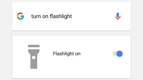 La función de linterna en tu teléfono puede ser activada y desactivada del mismo modo: simplemente di “encender linterna” o “apagar linterna” y la aplicación de Google Now lo hará por ti. Especialmente útil en esas situaciones en las que te encuentras buscando el teléfono en una habitación a oscuras.