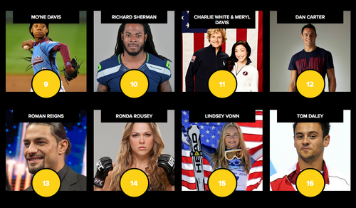 La lista difundida consta de 20 deportistas y solo hay dos futbolistas. Además del último ganador del Balón de Oro, también se encuentra Neymar. El azulgrana ocupa el quinto lugar gracias a campañas como la de la lucha contra el Ébola o la de llevar agua potable a todas las casas de Brasil. Neymar también fundó el año pasado un instituto en Sao Paulo para educar e inculcar el deporte entre los más jóvenes.