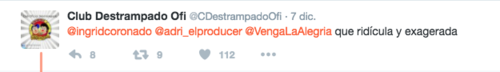 A través de su cuenta en Twitter, la conductora dijo que se estaba recuperando del incidente, "Gracias infinitas por preocuparse por mí! Estaba lista para verlos hoy pero @adri_elproducer me pidió que me cuidara para estar bien" se lee en el tuit publicado el pasado 7 de diciembre.
