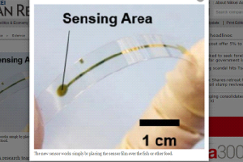 Se trata de un "material inteligente" de un centímetro de longitud que reacciona al ser colocado sobre estos productos, y cuyo uso permitiría evitar casos de intoxicación alimentaria, según sus creadores, un grupo de investigadores de la Universidad nipona de Yamagata (norte).