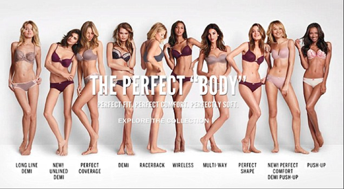 Un grupo de mujeres recreó la campaña de la marca de ropa interior de Victoria's Secret denominada "el cuerpo perfecto", como muestra de rechazo a la misma. En esta ocasión, las féminas vistieron las mismas prendas íntimas y el mismo color, solo que de diferentes tallas, ya que en la imagen original de dicha campaña, solo se pueden observar figuras casi de la misma talla y altura.