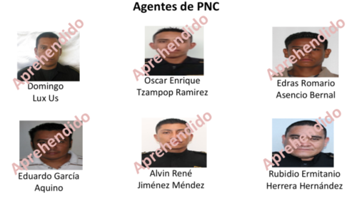 Los seis agentes policiales fueron detenidos este miércoles por los delitos de robo agravado, allanamiento, agravación específica, abuso de autoridad y uso indebido de uniformes e insignias. Así mismo, se les identificó como Domingo Lux, Oscar Tzampop, Edras Asencio, Eduardo García, Alvin Jiménez y Rubidio Herrera,