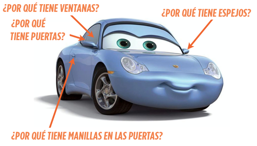 La principal pista es que los autos mantienen elementos necesarios únicamente si existen seres humanos que busquen abrirlos y meterse en ellos, como las ventanas, las puertas y las manijas.
