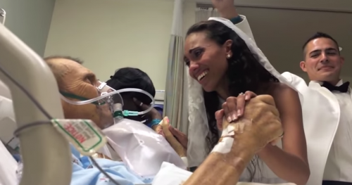 Lisa Wilson cambió los planes de una "boda perfecta" y su ceremonia de casamiento tuvo lugar en la habitación de un hospital en California, donde su padre enfermo con cáncer pasó sus últimos días.