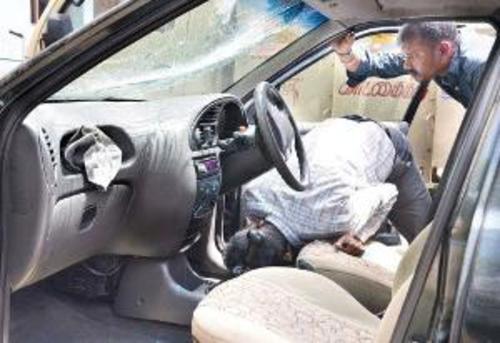 En una fotografía tomada en el hotel Le Meridien y publicada en el Times of India puede verse el lujoso bólido italiano, de un blanco rutilante, con el capó reventado por el impacto.