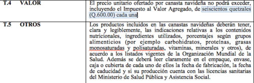 Además, detallan que el precio por canasta no puede exceder los 600 quetzales, incluyendo el Impuesto al Valor Agregado (IVA). Es decir, que tienen un presupuesto de 672 mil quetzales para adquirirlas.