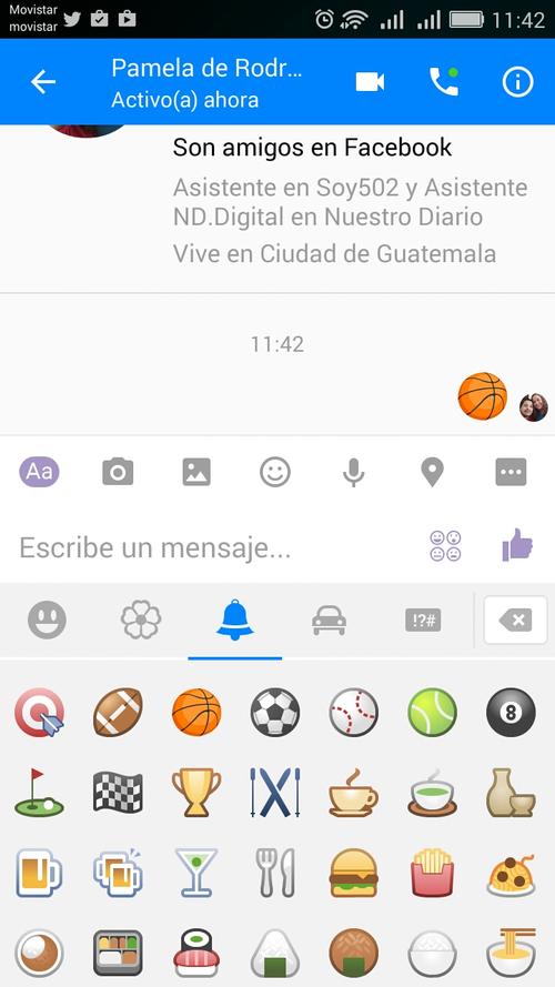 1. Abre Facebook Messenger en tu dispositivo móvil e inicia una conversación con un amigo y envíale el emoji de la pelota de basquetbol.