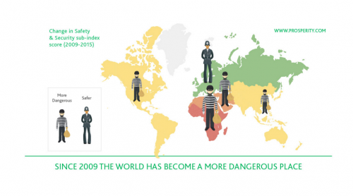 El índice además revela que La República Democrática del Congo, Siria y Afganistán son los lugares más peligrosos del mundo. Los diez peores puestos de la general los ocupa Liberia en el número 132, Angola en el 133, Sudán en el 134, Yemen 135, Siria en el 136, República Democrática del Congo 137, Burundi 138, Chad 139, Haití 140, Afganistán 141 y la República Centroafricana es catalogada como el peor lugar para vivir.