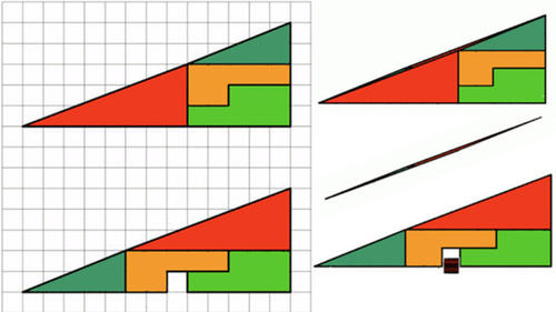 Tal como explica la BBC, la respuesta a esta ilusión óptica está en lo que se conoce como la "paradoja del cuadrado perdido". Se trata de un problema frecuente en clases de geometría consistente en reordenar un rompecabezas de cuatro piezas, de tal forma que aparezca un agujero cuadrado en la parte de abajo.