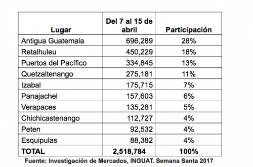 Antes de la Semana Santa, el Inguat preveía la llegada de 110 mil visitantes internacionales, así como una movilización total de dos millones de turistas a nivel nacional.