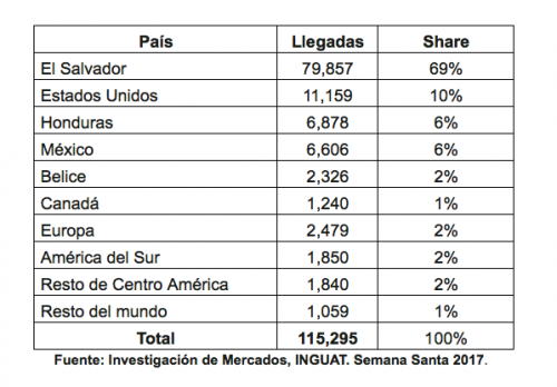 En cuanto a la llegada de extranjeros, El Salvador desplazó 79 mil 857 visitantes; Estados Unidos, 11 mil 159; y el resto del mundo complementa la lista.