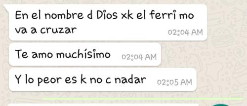En los últimos mensajes de Whatsapp que el adolescente de 17 años le envió a su novia Videlma, le dijo que la amaba, se encomendó a Dios y le contó que no sabía nadar.