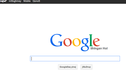 Si escribes en la barra de búsqueda "xx Klinglon" y luego presionas "voy a tener suerte", el buscador cambiará a este idioma ficticio de la serie Star Trek.