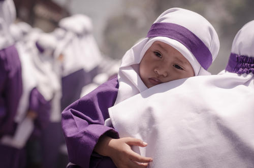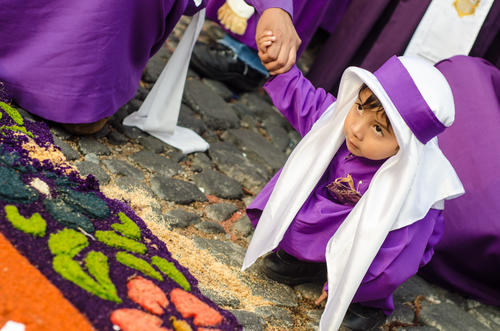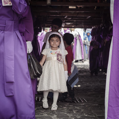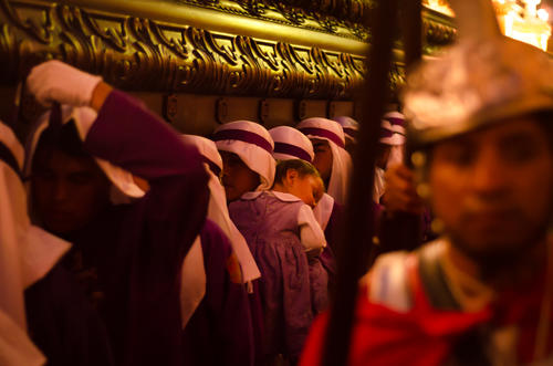 Las aspirantes a devotas cargadoras también dicen presente en las procesiones de la Antigua Guatemala. (Foto: Jorge Ortiz)