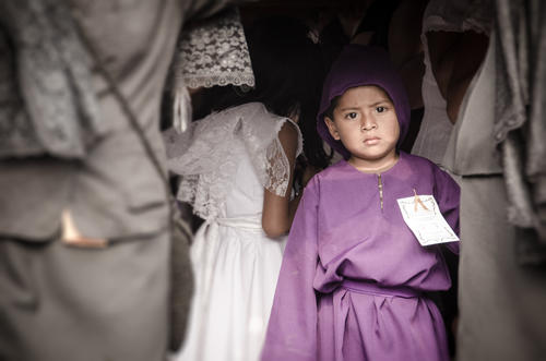 La solemnidad del momento y el traje de cucurucho se fusionan con la inocencia de los niños. (Foto: Jorge Ortiz)