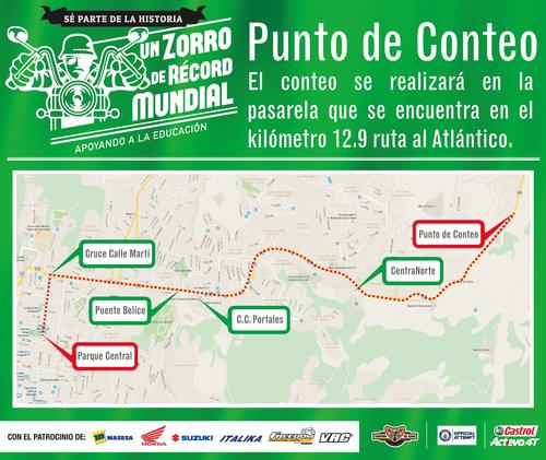 - Pasar por el kilómetro 12.9 de la ruta al Atlántico para quedar dentro de los registros del personal de Guinness.
