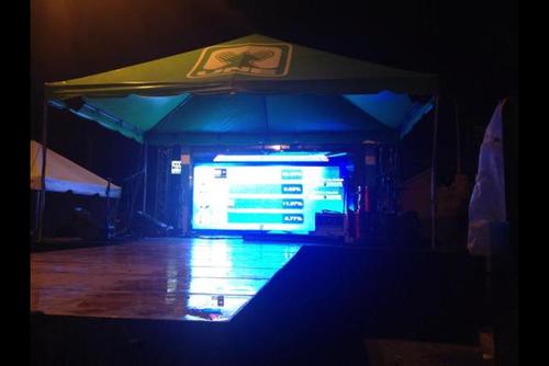 Mientras en el centro de computo ubicado en el Parque de la Industria se leían los resultados en las sedes de la UNE aguardaban con hermetismo, al punto que un grupo de músicos contratados para animar a los seguidores del partido verde se marchaban del edificio del partido en la zona 9, apenas a las 8 de la noche, con el escenario vacío.