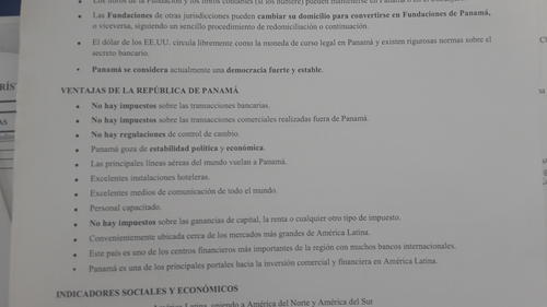 El catalógo que Mossack Fonseca entregaba a sus posibles clientes contiene una hoja de cada paraíso fiscal donde describe las ventajas de crear una sociedad en el lugar.