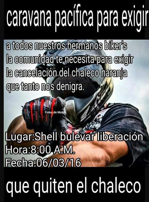 Los pilotos de motocicleta no se hicieron esperar y ya convocaron a una manifestación para este sábado para pedir que se cancele la exigencia del chaleco naranja.
