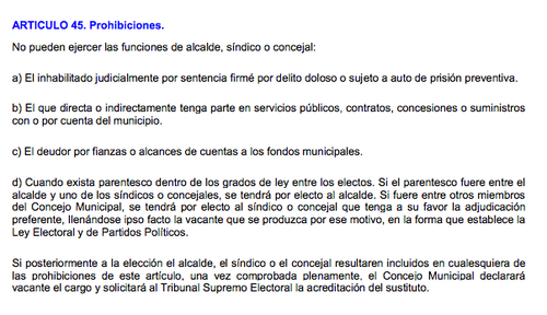 Consultado el exmagistrado del TSE, Mario Guerra, afirmó que el artículo 46 no es prohibitivo es discrecional “la renuncia que se plantea es una opción no una prohibición” las limitantes se establecen en el artículo 45 de la misma ley explicó el exfuncionario.
