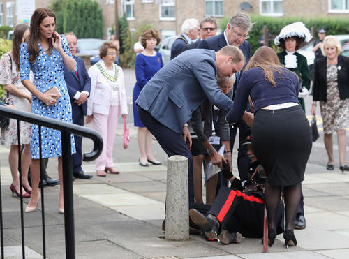 El hecho ocurrió en la mañana del viernes, cuando los Duques de Cambridge llegaron a la escuela de Stewards Academy en Harlow en Inglaterra para un evento de caridad, sin embargo despues de saludar al Vice Lord-Lieutenant de Essex, Jonathan Douglas-Hughs, el dignatario de 72 años se tropezó y se cayó en el suelo.