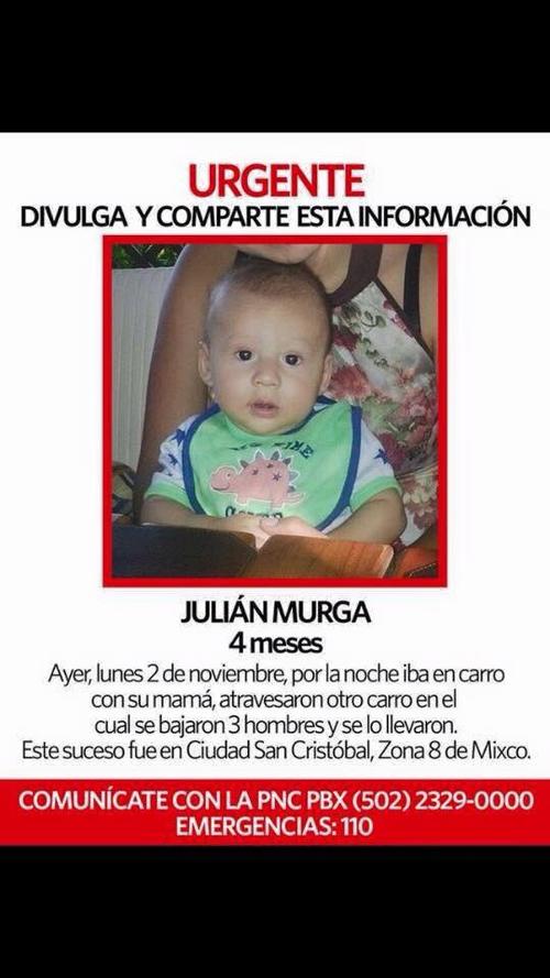 Felipe Julián Murga Benavente (4 meses) fue robado hoy en el #TráficoGT de San Cristóbal, Mixco. Vía: #PGNGuatemala