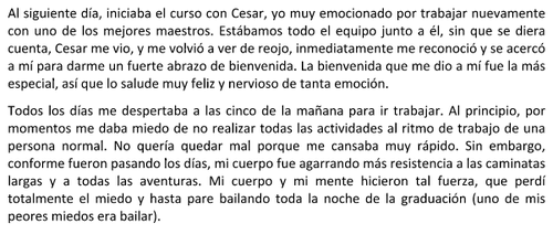 "Al principio me daba miedo no realizar las actividades al ritmo de trabajo de una persona normal, pero mi cuerpo y mi mente se fueron fortaleciendo y terminé bailando", explicó orgulloso de haber superado el reto.