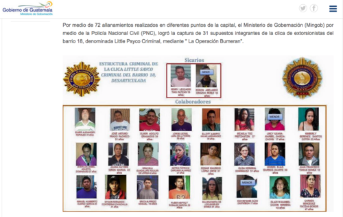 El último de los operativos tuvo lugar la mañana de este martes, el cual fue denominado #OperaciónRoble, el que permitió la captura de 12 presuntos pandilleros integrantes de la mara Salvatrucha, sindicados de extorsionar con 25 quetzales diarios, a 144 mujeres en el sector conocido como "La Línea" en la zona 1.
