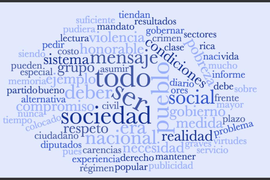 Según un análisis de repetición de palabras realizado al discurso de Maldonado, "sociedad" y "pueblo" fueron las palabras más mencionadas por el ahora ex presidente del país.