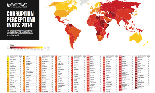 Dinamarca y Nueva Zelanda ocupan los dos primeros lugares de las naciones menos corruptas, mientras que Somalia y Corea del Norte es donde se percibe mayor corrupción, según el informe.