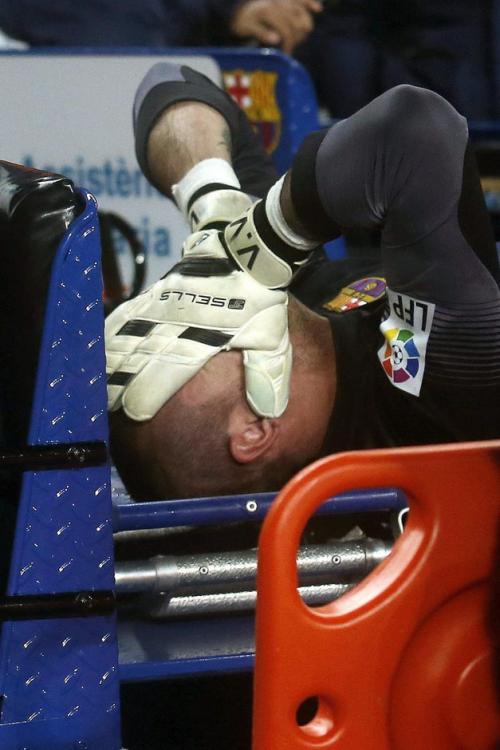El jugador se lesionó en el minuto 20 de la primer parte del Barça-Celta (3-0) cuando apoyó el pie derecho en el suelo en una despeje, y se torció la rodilla, y eso le obligó a salir del campo en camilla.