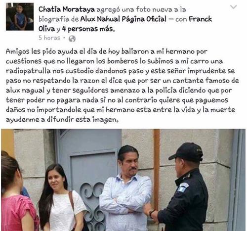Según declaraciones de los involucrados en este suceso, el hermano de la usuaria de facebook, "Chatía Morataya", fue víctima de un ataque armado; la policía, según aclara, custodió a la familia hacia un centro asistencial.