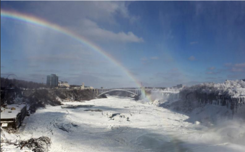 La intensa ola de frío que afecta Estados Unidos llegó a congelar partes de las famosas cataratas del Niágara.
