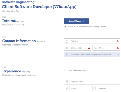 Ofrecen seis categorías a las cuales podrás enviar tu papelería, de las cuales en al menos 14 opciones pueden aplicar los guatemaltecos. Hay puestos de ingeniería de software, asuntos legales, operaciones en línea, diseño del usuario, manejo del producto, entre otras.