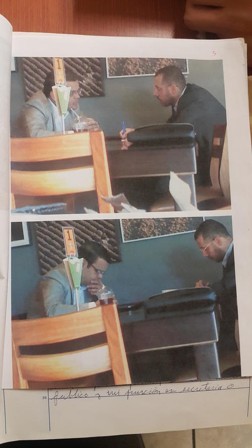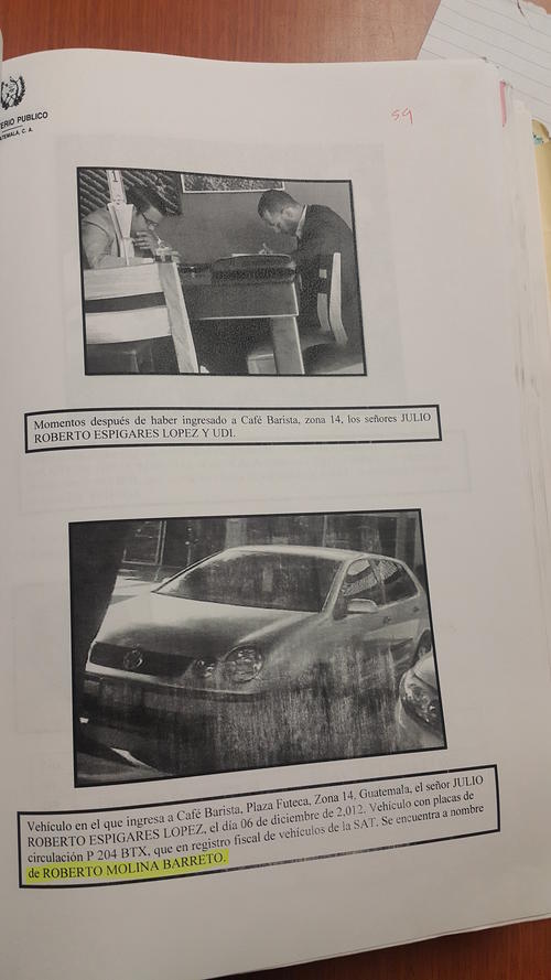 El expediente también registra que Espigares llegó a la reunión en un sedán marca Volkswagen, placas P-204BTX, registrado a nombre de Molina Barreto.